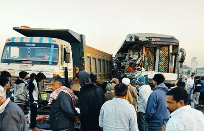 આ અકસ્માત ગુજરાતના કચ્છમાં થયો હતો, જેમાં બસ અને ટ્રક વચ્ચે જોરદાર ટક્કર થઈ હતી. બસમાં 40 લોકો સવાર હતા જેમાંથી 7 લોકોના મોતની પુષ્ટિ થઈ છે. આ સિવાય ઘણા લોકો ઘાયલ થયાના સમાચાર પણ સામે આવ્યા છે. પોલીસને આ અંગેની માહિતી મળી અને તાત્કાલિક ઘાયલોને નજીકની હોસ્પિટલમાં લઈ ગયા. તમામ ઘાયલોની સારવાર ચાલી રહી છે.